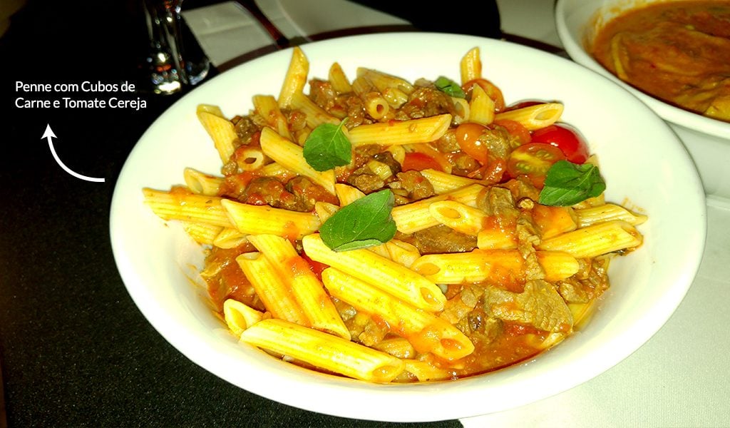 O prato principal você pode escolher entre quatro opções de massas de acordo com o que mais agradar seu paladar. Dentre elas temos o Penne com Cubos de Carne e Tomate Cereja, que é o carro chefe do restaurante, Penne à Bolonhesa, Spaghetti à Bolonhesa e Tortei de Abóbora com Carne Desfiada, cada um mais delicioso que o outro!