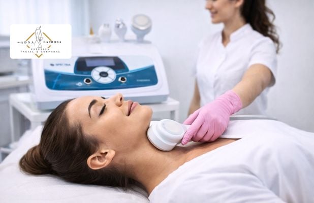 Dra. Adna Barbosa: Sessão Lipo de Papada com Spectra Plus, de R$99,90 por R$49,90. Definição e Firmeza sem Cirurgia!