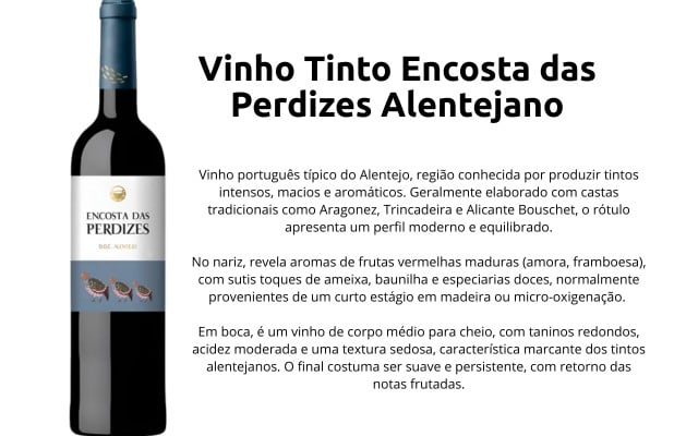 - 1 (um) Vinho Tinto Encosta das Perdizes Alentejano OU Tinto Oveja Black 750ml