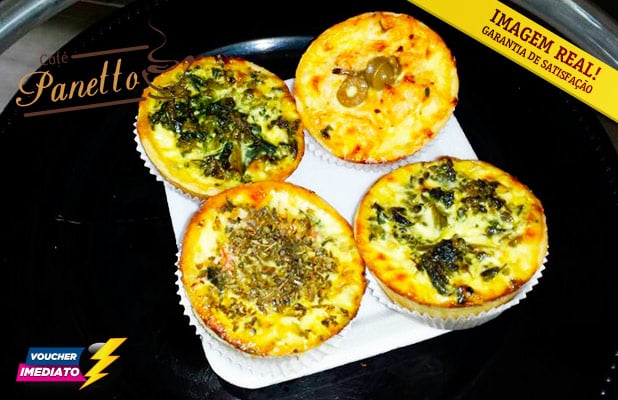 Como resistir? 4 Deliciosos Quiches de R$22 por R$10,90 no Café Panetto. Deleite-se com essa especialidade da cozinha francesa!