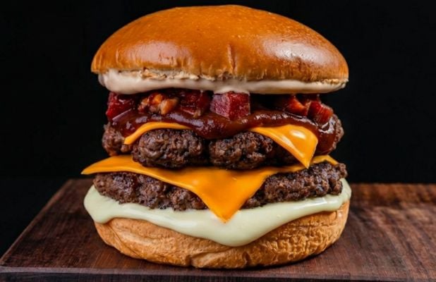 - O Alpha Smoked Burger é a escolha perfeita para quem gosta de hambúrguer com personalidade. Preparado no pão brioche macio, ele traz dois burgers suculentos de 150g, combinados com cheddar fatiado, bacon em cubos bem dourados, molho barbecue e a maionese especial da casa, criando um equilíbrio irresistível entre o defumado e o cremoso
