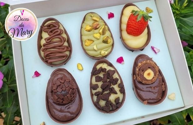 Doces da Mary: Caixa Degustação com 6 Ovos de 50g, de R$65 por R$49,90. Seis Sabores, Uma Só Experiência!
