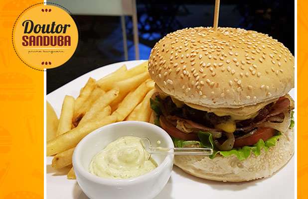 - Sanduíche Doutor Sanduba: Pão de hamburguer com gergelim, 150g de Hamburguer bovino Angus, Queijo Prato, Presunto, Cebola grelhada, Alface, Tomate, e Molho especial