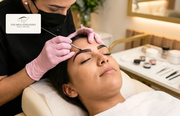 Design de Sobrancelhas + Aplicação de Henna com Eduarda Fernandes, de R$65 por R$39. Seu Olhar Mais Marcante em Poucos Minutos!