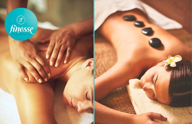 Sessão de Massagem Relaxante com Opção de Pedras Quentes na Finesse, a partir R$79. Massagem que Renova o Corpo e Acalma a Mente!