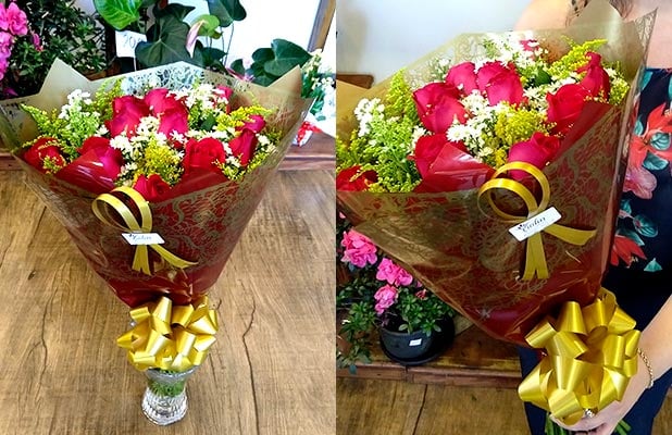 Floricultura Violin: Buquê com 12 Rosas Vermelhas, de R$80 por R$56. Uma Ótima Opção para Presentear!