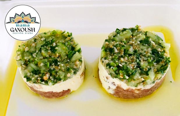 Trio MamaGanoush com Kibe Cru, Coalhada Seca e Tabule, de R$33 por R$25. A Verdadeira Comida Árabe!