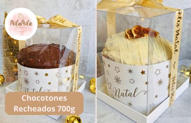 Deliciosos Chocotones Recheados com 700g da MilaMilá: de R$92 por R$73,60. Cada Fatia, uma Surpresa Deliciosa!