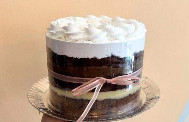 - > Dois Amores: massa de chocolate, recheio cremoso de brigadeiro branco, brigadeiro ao leite e cobertura de chantilly