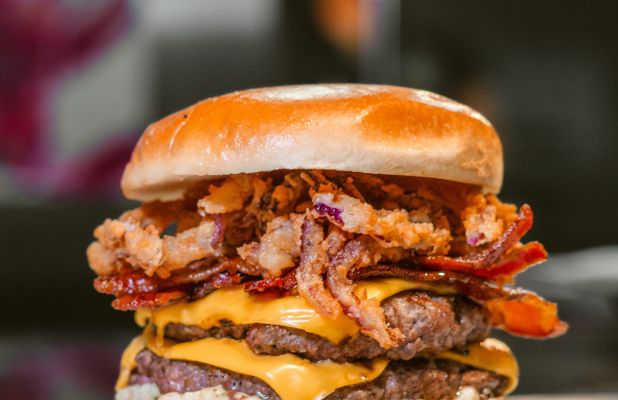 - Conheça esta delícia: pão brioche, 2 burgers de 80g cada, queijo cheddar fatiado, maionese de alho, cebola crispy e bacon caramelizado