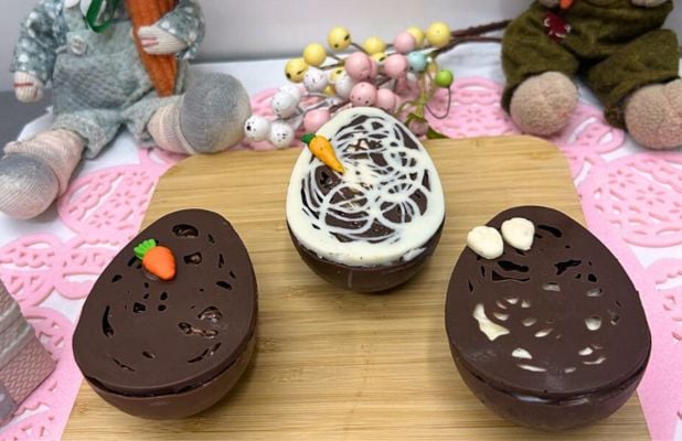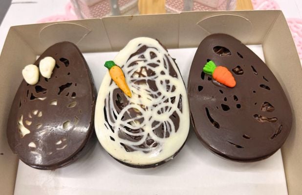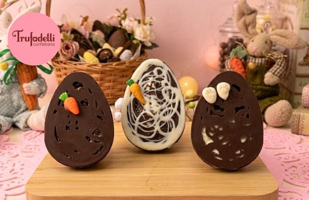 - Caixa com 3 Ovos de Páscoa 100g cada com Recheio Artesanal da Trufadelli!
