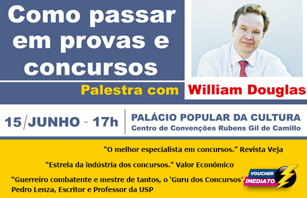 Palestra com William Douglas, o "Guru dos Concursos", maior especialista em aprovações do Brasil, de R$100 por apenas R$49. Compre quantos vouchers desejar!